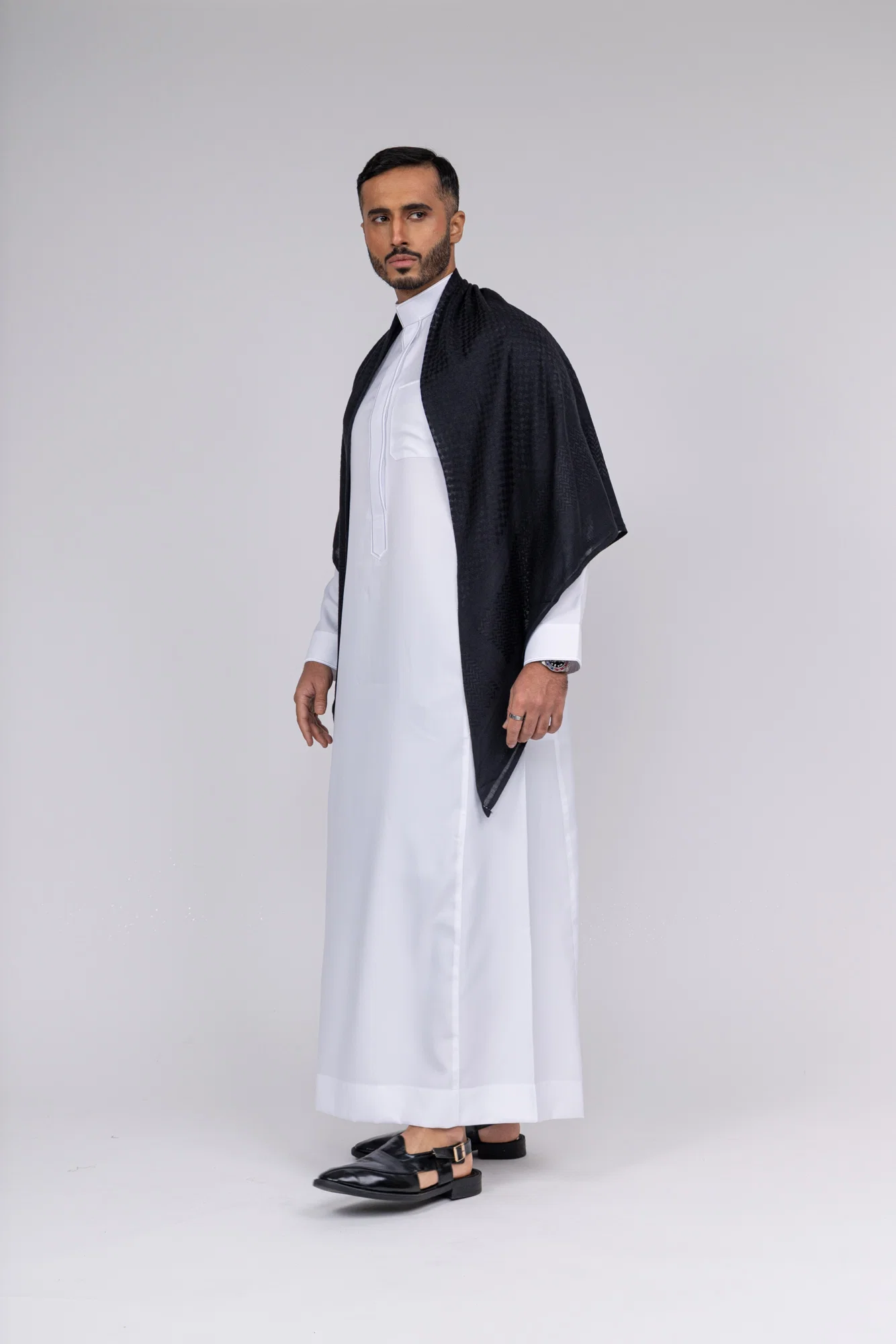 Our Black Shemagh with Black Embroidery offers a bold yet understated look, crafted from premium-quality fabric for comfort and durability. The deep black design is finished with subtle black embroidered trim, creating a clean and sophisticated style that pairs effortlessly with any thobe.