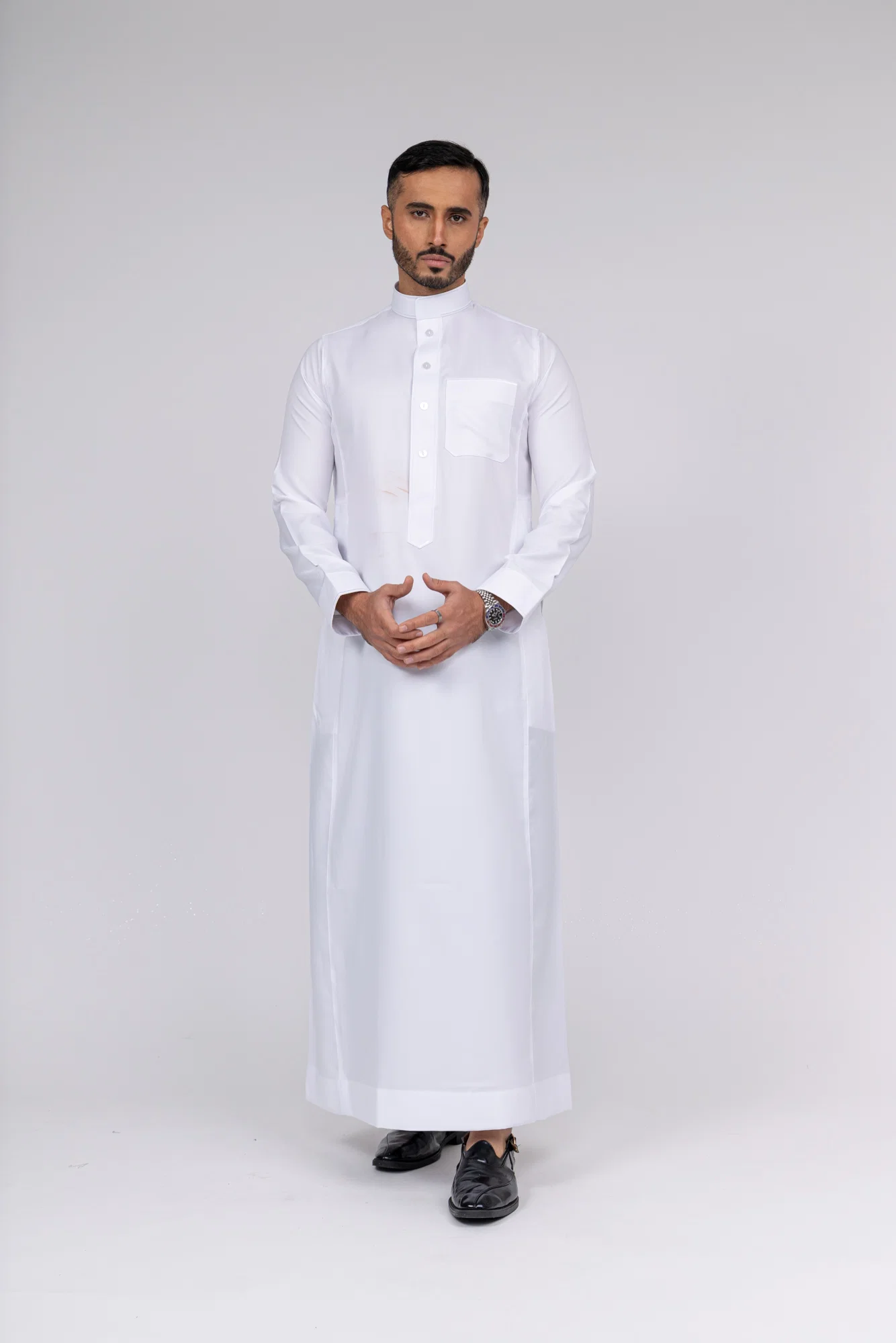 With two side pockets and a breast pocket, these are practical thobes and are widely worn throughout the Middle East.